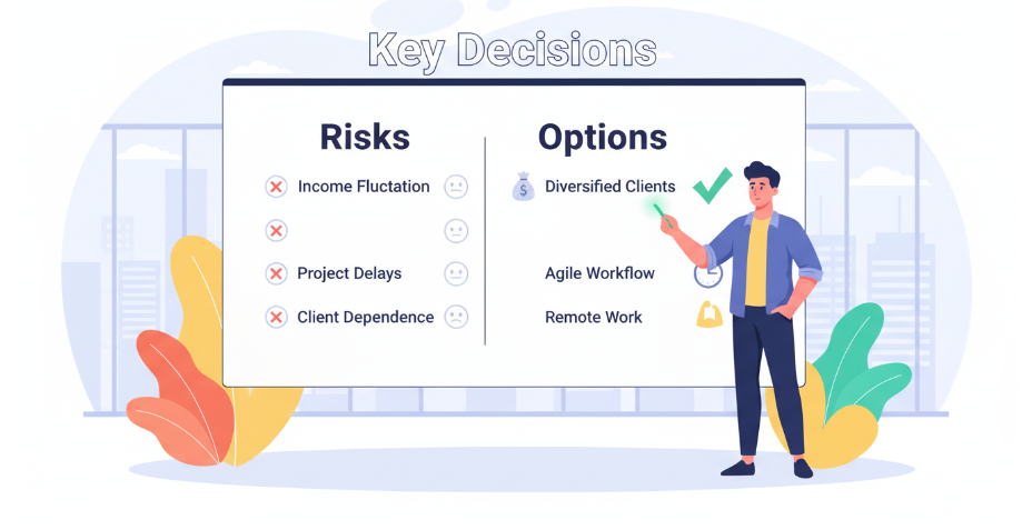 キャリアプランと照らし合わせて優先度を決める 今後3〜5年の働き方のイメージと比較し、「取引の幅を優先するか」「シンプルな運営を優先するか」を明確にします。